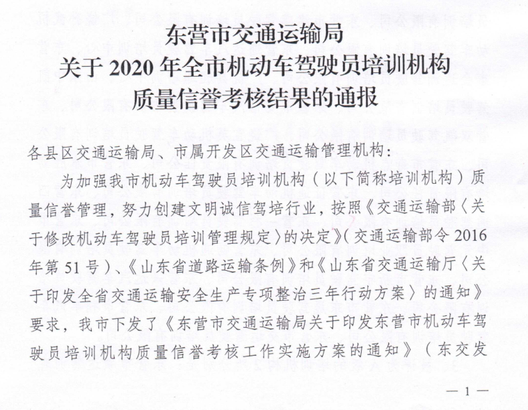 市交通运输局关于2020年全市机动车驾驶员培训机构质量信誉考核结果的通报